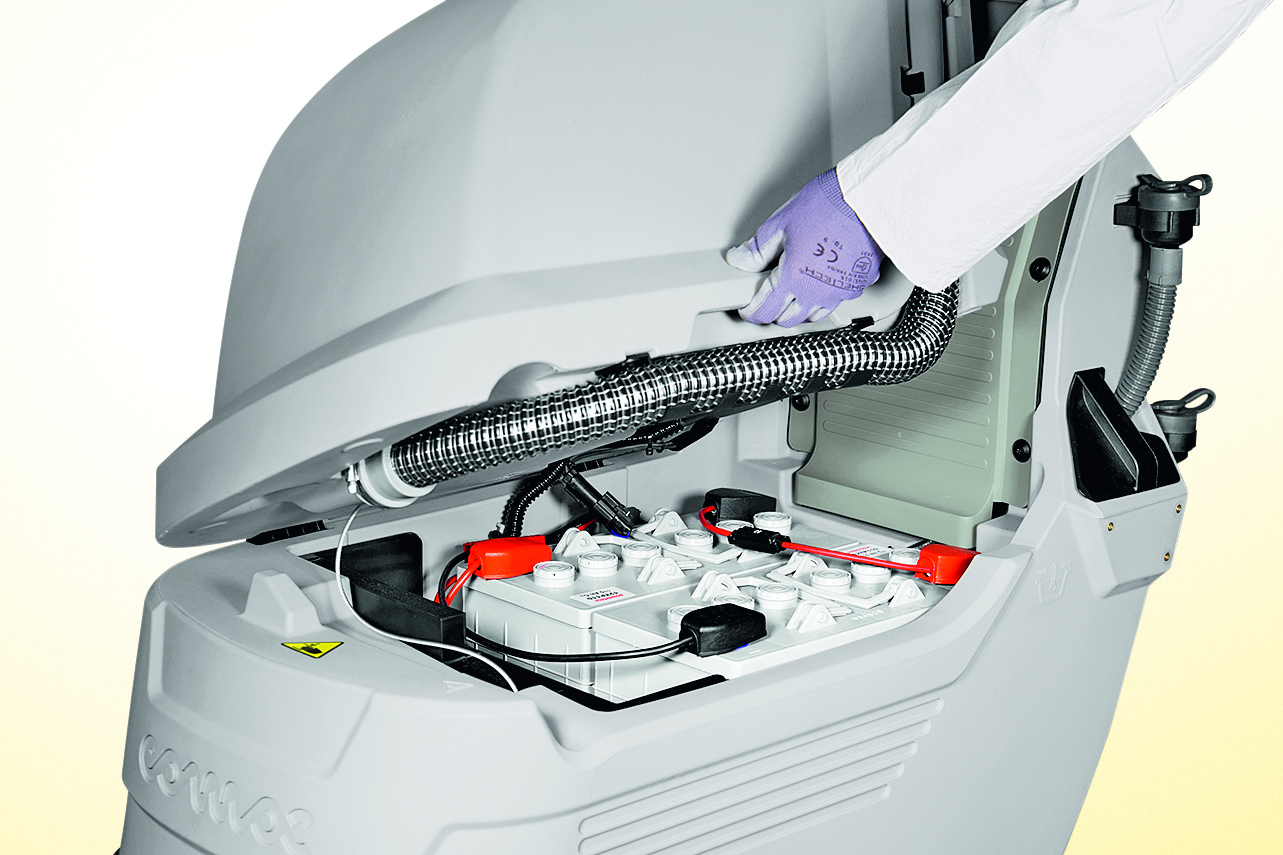Maszyna czyszcząca Comac Antea nowa linia zmywarek prowadzonych, zasilanych baterią - odpowiedzią na potrzebę gruntownego czyszczenia jak i o codziennej pielęgnacji posadzek twardych o powierzchni do 2 200 m2.