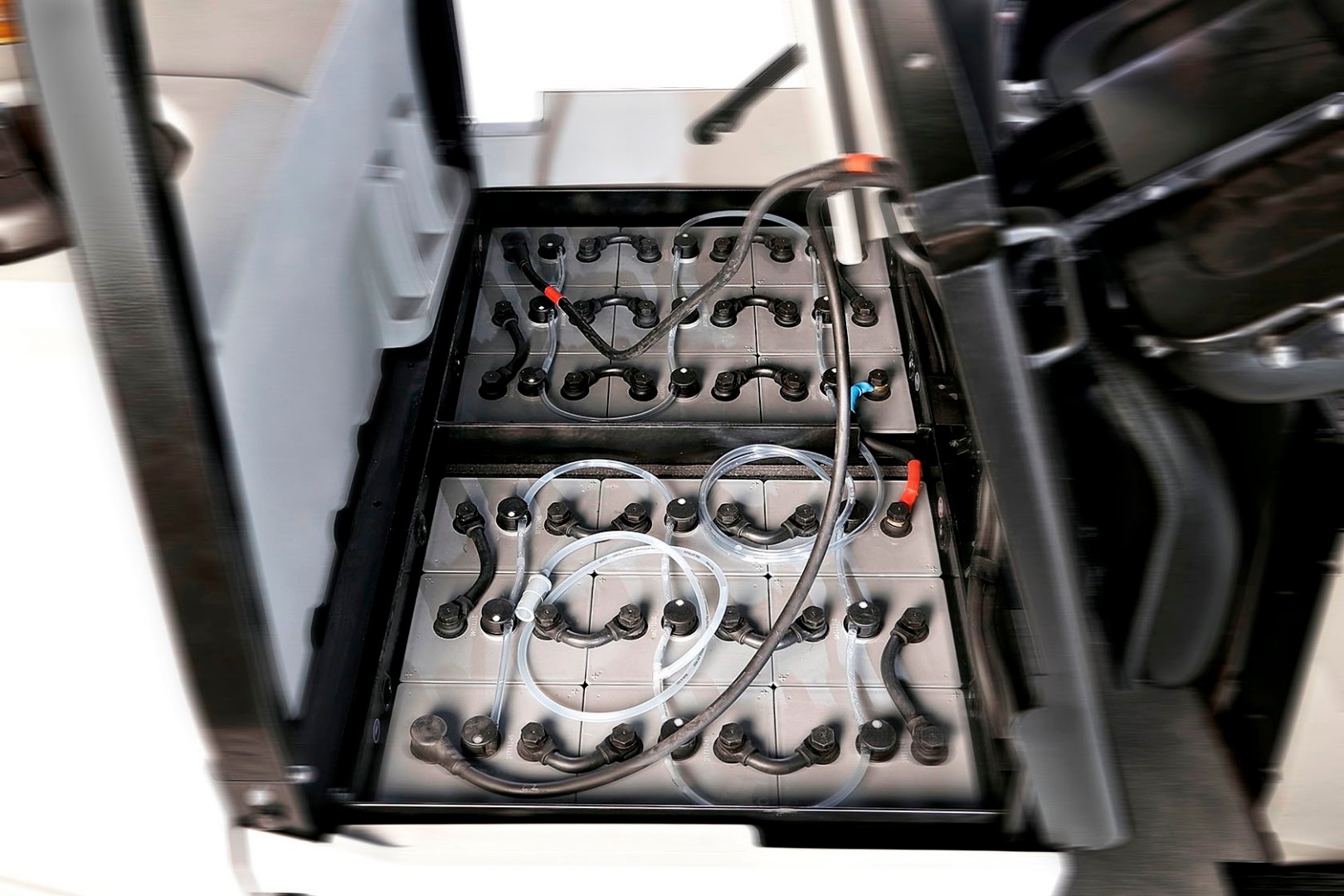 System automatycznego uzupełniania umożliwia regulowanie poziomu naładowania akumulatorów z jednego punktu. Operacja jest bardziej bezpieczna i umożliwia wyeliminowanie przestojów (na zamówienie).