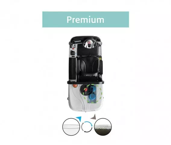 System NSC wbudowany w C85 pozwala na ponowne wykorzystanie wody w trzech fazach: w pierwszym woda jest normalnie używana i zbierana przez odkurzanie; w drugiej fazie woda jest filtrowana i oczyszczana, co kończy fazę recyklingu wody. Dlatego w trzeciej fazie woda jest ponownie dostępna. Aby zaspokoić najbardziej specyficzne potrzeby czyszczenia.Maszyna do mycia posadzki Comac C85 NSC PREMIUM jest wyposażona w zaawansowany stopień filtracji w celu uzyskania jeszcze bardziej oczyszczonej wody, dzięki czemu działa z czystą wodą.