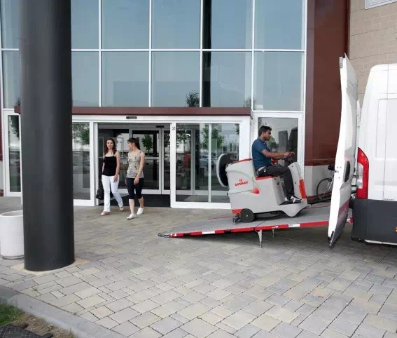 Comac stworzył niezwykle praktyczny model maszyny do mycia posadzek: rzeczywiście, przy tej samej inwestycji co w przypadku modelu obsługiwanego przez operatora stojącego na ziemi, można stać się posiadaczem maszyny Comac Innova 55 B, wygodniejszej w użytkowaniu i szybszej w wykonywaniu operacji czyszczenia.