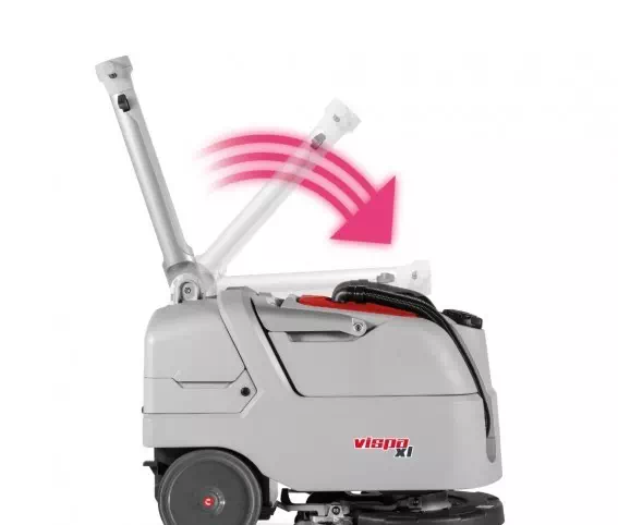 Kierownicę można całkowicie zamknąć w kierunku korpusu maszyny, kompaktowe wymiary ułatwiają jej transport oraz przechowywanie maszyny na niewielkich przestrzeniach. Vispę XL można przechowywać także pionowo (tylko gdy urządzenie nie posiada płynów do czyszczenia)