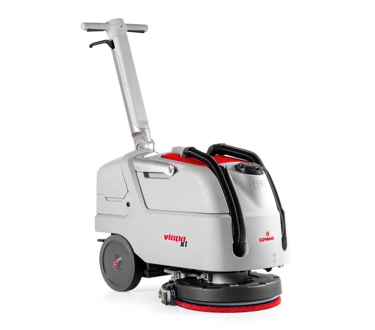 Nacisk na podłoże to aż 40kg - dzięki niemu czyszczenie nawet mocno zabrudzonych posadzeg nie stanowi problemu.VISPA XL posiada szereg funkcji, które poprawiają komfort operatora i jakość użytkowania maszyny.