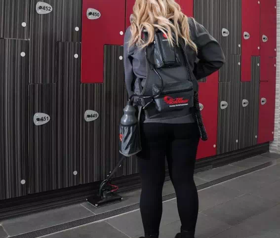 - Plecak wyposażony w akumulator, pompę, butelkę na roztwór, uniwersalną szybkozłączkę (plecak jest komplatybilny z innymi urządzeniami od Motorscrubber)