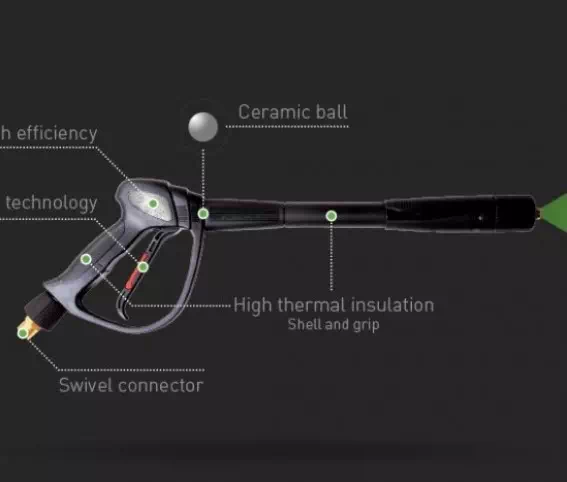 Absolute-C wposażona jest w wysokiej jakości, wygodny pistolet, który dzięki swoim parametrom jest najlepszy w swojej kategorii. Posiada kulkę ceramiczną, która zapewnia doskonałą odporność na zużycie, korozję, czy używane środki chemiczne (w tym kwasy, czy chlor). Aby zapobiec przypadkowej aktywacji zastosowano blokadę spustu.
