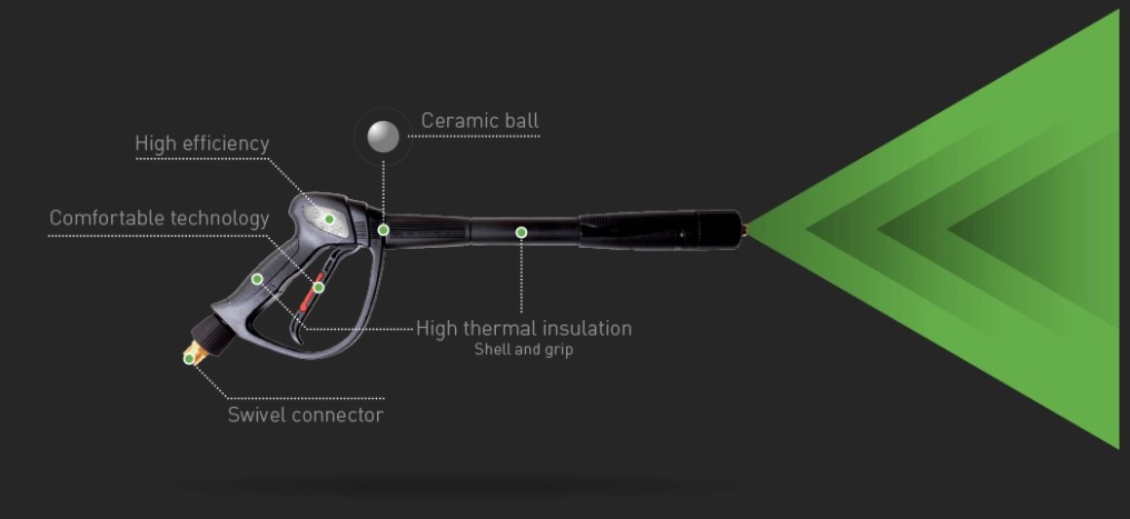 Absolute-C wposażona jest w wysokiej jakości, wygodny pistolet, który dzięki swoim parametrom jest najlepszy w swojej kategorii. Posiada kulkę ceramiczną, która zapewnia doskonałą odporność na zużycie, korozję, czy używane środki chemiczne (w tym kwasy, czy chlor). Aby zapobiec przypadkowej aktywacji zastosowano blokadę spustu.