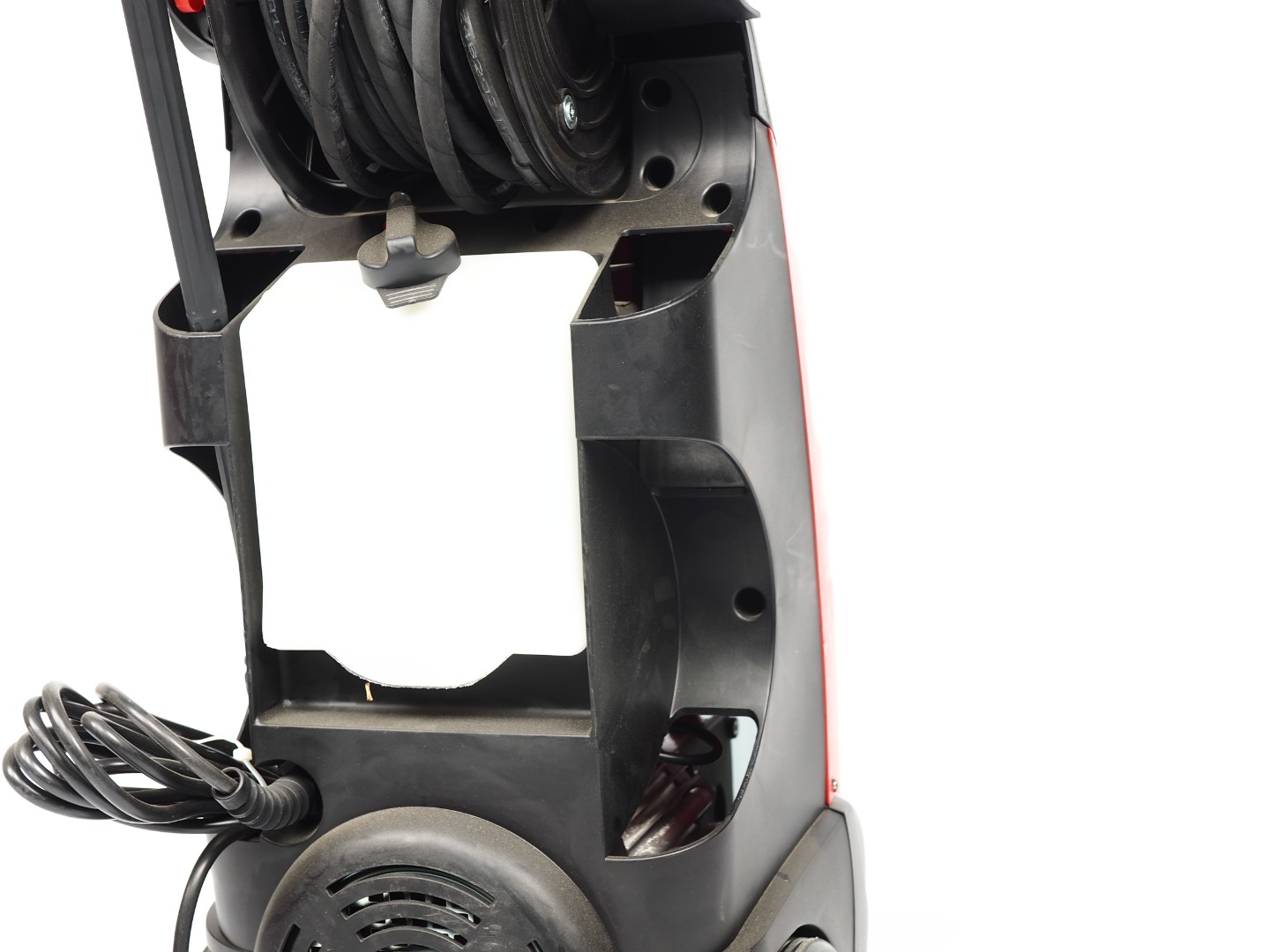 Urządzenie posiada zwartą pionową budowę z poziomo umieszczoną korbowodową pompą. Konstrukcja zapewnia niezwykle funkcjonalne rozmieszczenie zintegrowanych elementów wyposażenia myjki: