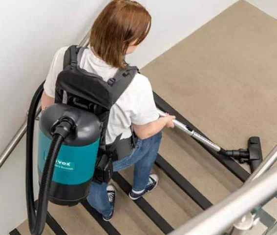 Odkurzacz plecakowy bateryjny, dzięki któremu dotrzesz do miejsc, w których nie masz możliwości użycia zasilania sieciowego. Bez zbędnych przedłużaczy, na zasilaniu baterią litowo jonową, której pełne naładowanie umożliwa aż 55 min ciągłej i wydajnej pracy.