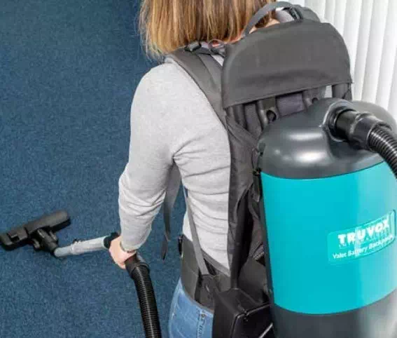 ODKURZACZ PLECAKOWY BATERYJNY TRUVOX posiada wydajną baterię pozwalającą na 55min ciągłej pracy na jednym ładowaniu