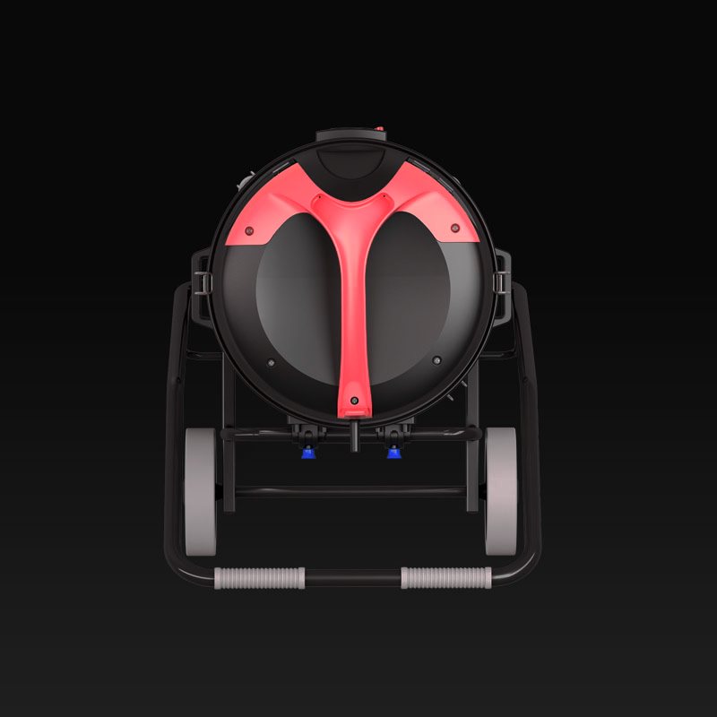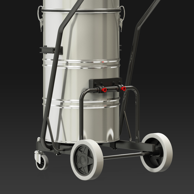 Wózek z ergonomicznymi kołami - zaprojektowany do wydajnej, wygodnej pracy, łatwego transportu i całkowitego bezpieczeństwa. Rama wózka jest pochyła co umożliwia proste opróżnianie zbiornika.
