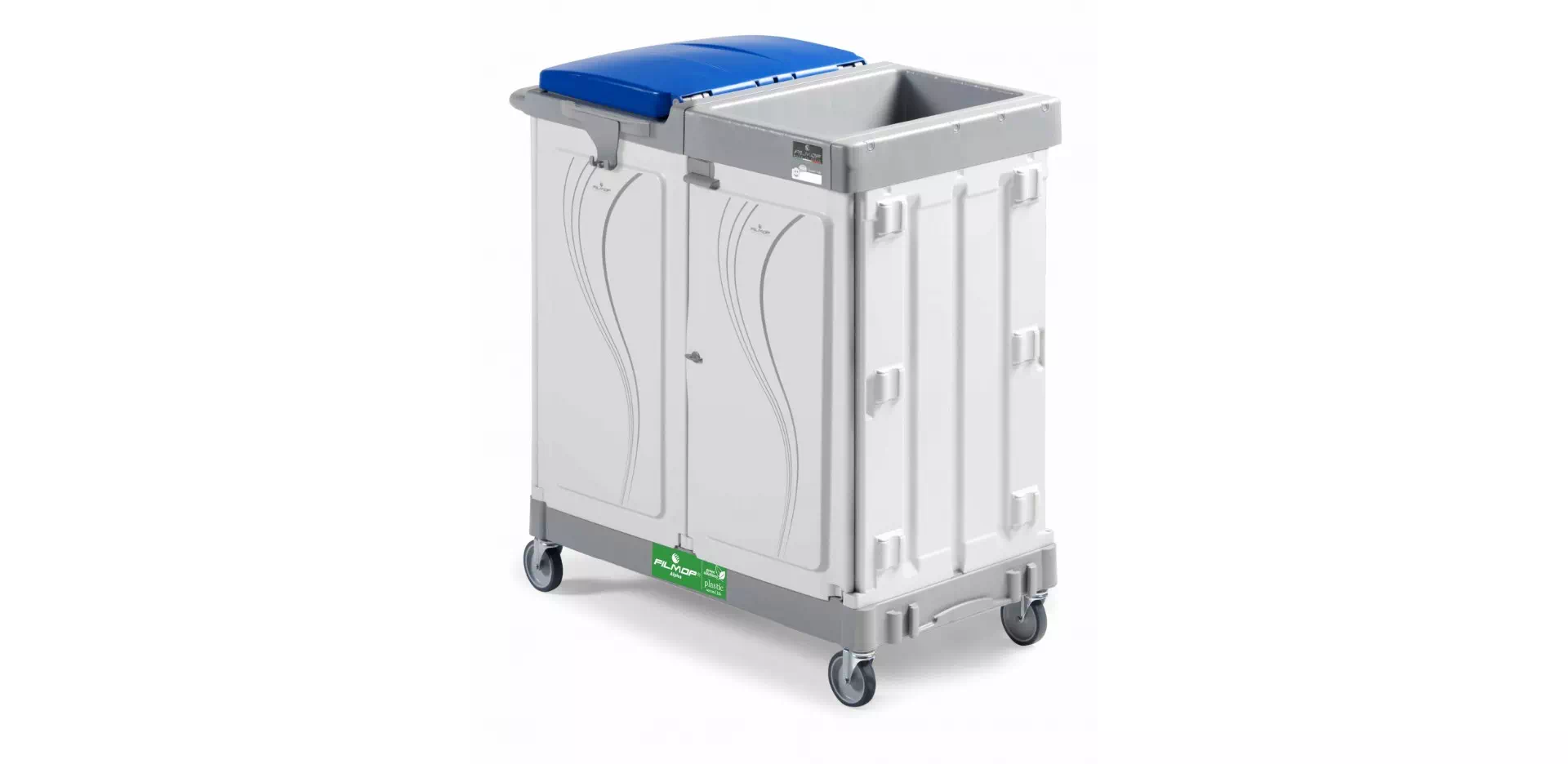 Wózek idealny do zbiórki odpadów oraz transportu środków czystości i sprzętu.