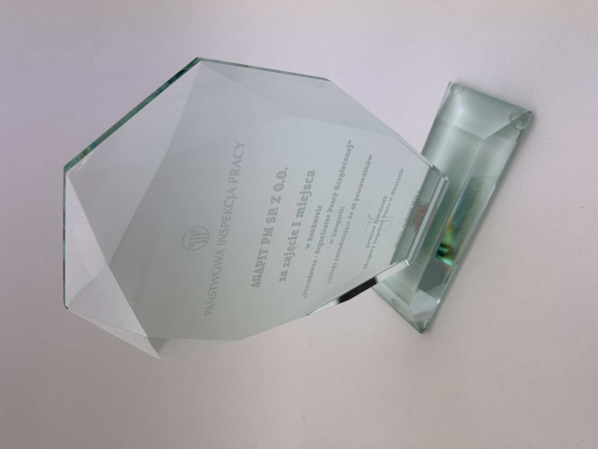 Agapit PM została wyróżniona za wzorowe przestrzeganie zasad bezpieczeństwa i ochrony zdrowia pracowników w Konkurskie Państwowej Inspekcji Pracy!
