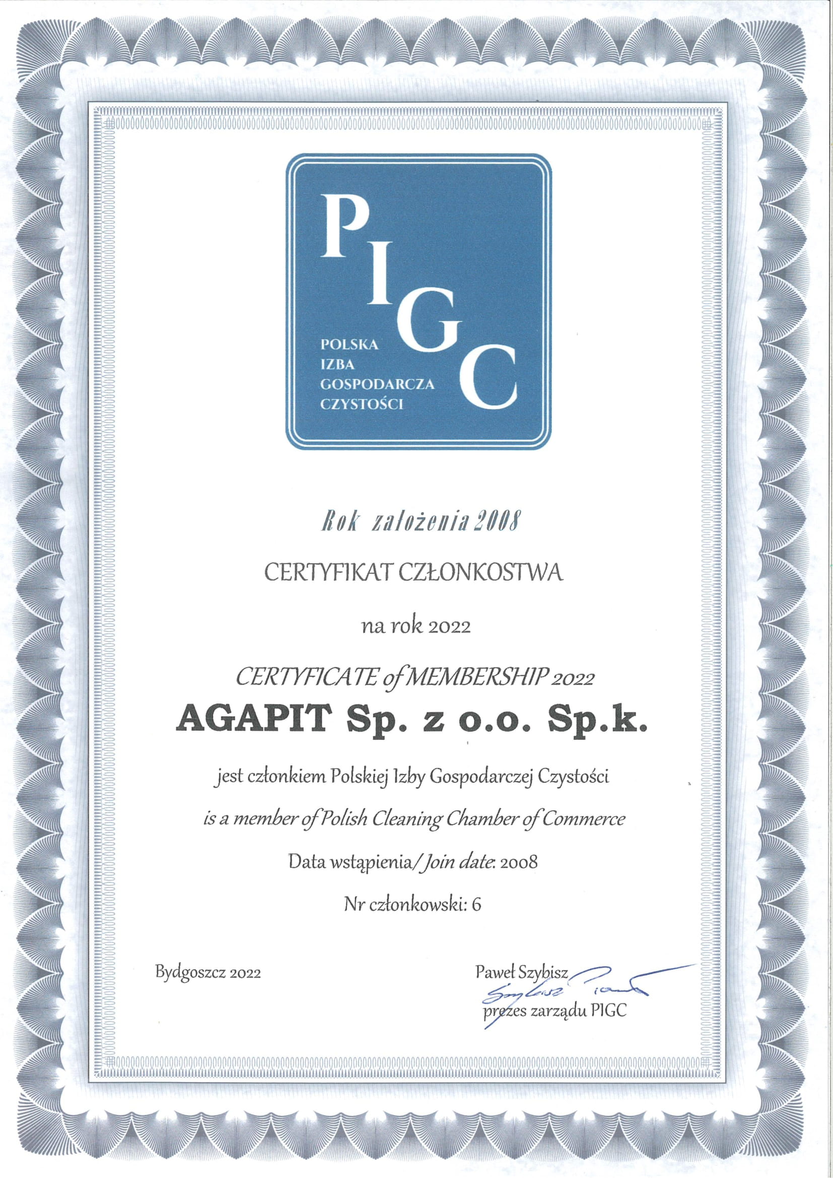 Firma Agapit jest członkiem Polskiej Izby Gospodarczej Czystości. Współdziałamy w tworzeniu regulacji branżowych. Uczestniczymy w targach i wydarzeniach w obrębie naszej branży. Stosujemy przyjęte zasady dotyczące etyki prowadzenia przedsiębiorstwa.