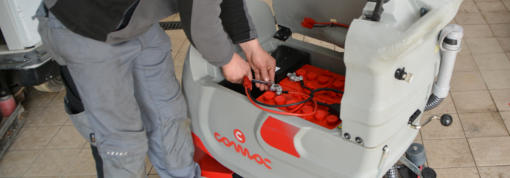 Posiadamy własny nowoczesny zakład odbudowy maszyn czyszczących, prowadzimy regenerację baterii trakcyjnych oraz dysponujemy największym w Polsce zapleczem części zamiennych i eksploatacyjnych do maszyn czyszczących większości typów i marek.