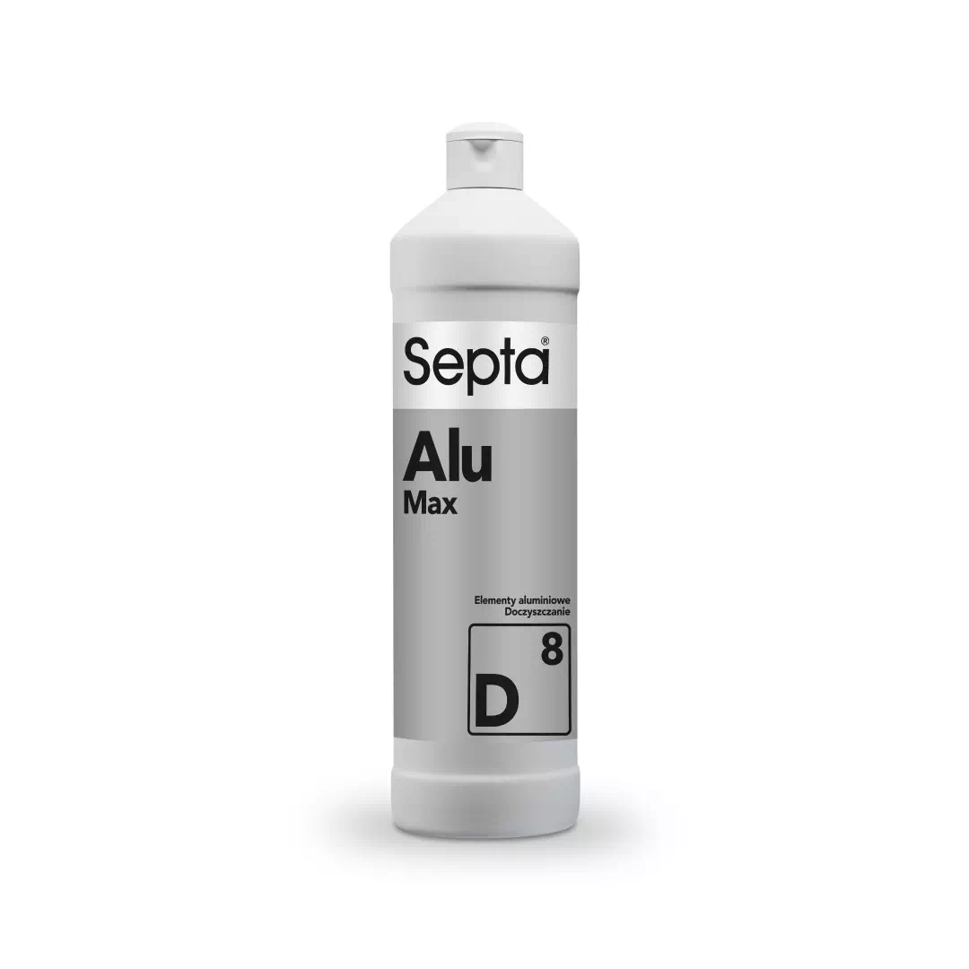 Septa Alumax D8 to koncentrat do mycia felg aluminiowych oraz elementów ze stopów metali lekkich oraz stali nierdzewnej. Charakteryzuje się działaniem myjącym, odkamieniającym oraz konserwującym. Błyskawicznie usuwa tlenki i pył z klocków hamulcowych. Stosowany również do usuwania osadów nieorganicznych, kamienia wodnego i rdzy z powierzchni odpornych na działanie kwasów.