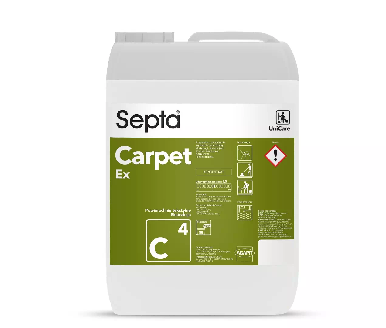 Septa Carpet Ex C4 to profesjonalny środek chemiczny do czyszczenia i prania wykładzin technologią ekstrakcyjną. Metoda jest szybka, skuteczna, bezpieczna i ekonomiczna.
