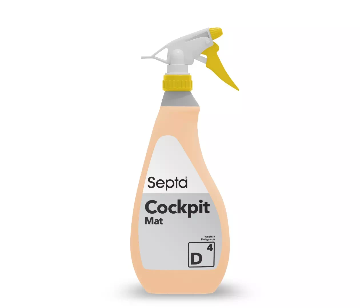 Septa Cockpit Mat D4 to profesjonalna chemia samochodowa do mycia wnętrz pojazdów. Elementy z tworzyw pozostawia matowe. Doskonale czyści i usuwa zabrudzenia. Nie natłuszcza, pozostawia ładny zapach. Produkt gotowy do użycia.