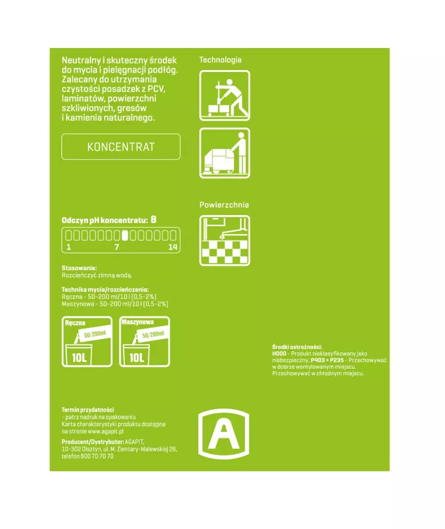 Cecha Wartość odczyn pH 8 cechy bezpieczeństwo stosowania cechy antypoślizgowy sposób użycia koncentrat -