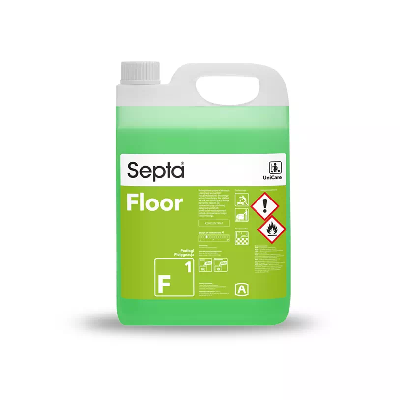 Septa Floor F1 to profesjonalne środki czystości do mycia i pielęgnacji wszystkich rodzajów posadzek. Bezsmugowy i szybkoschnący. Nie odkłada warstw, antypoślizgowy. Nadaje przyjemny zapach. Płyn do podłóg do stosowania przy codziennej pielęgnacji wszelkich powierzchni wodoodpornych techniką zmywania ręcznego i maszynowego.