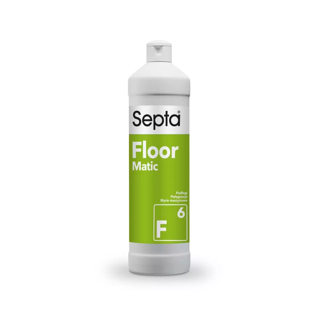 Septa Floor Matic F6 to uniwersalny neutralny środek do mycia podłóg. Szczególnie zalecany do mycia maszynowego. Bezpieczny dla mytych powierzchni, do zastosowania na wszystkich posadzkach wodoodpornych.
