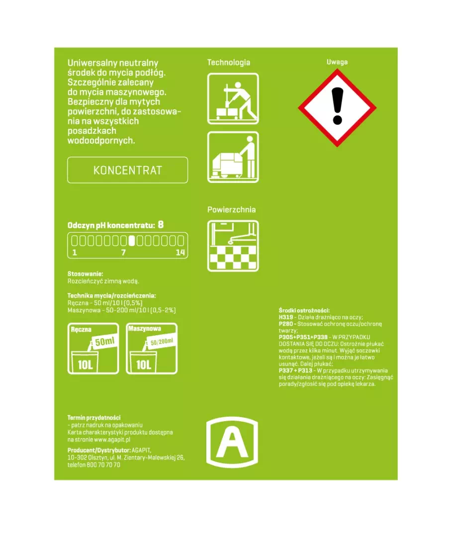 Cecha Wartość odczyn pH 8 cechy bezpieczeństwo stosowania sposób użycia koncentrat -