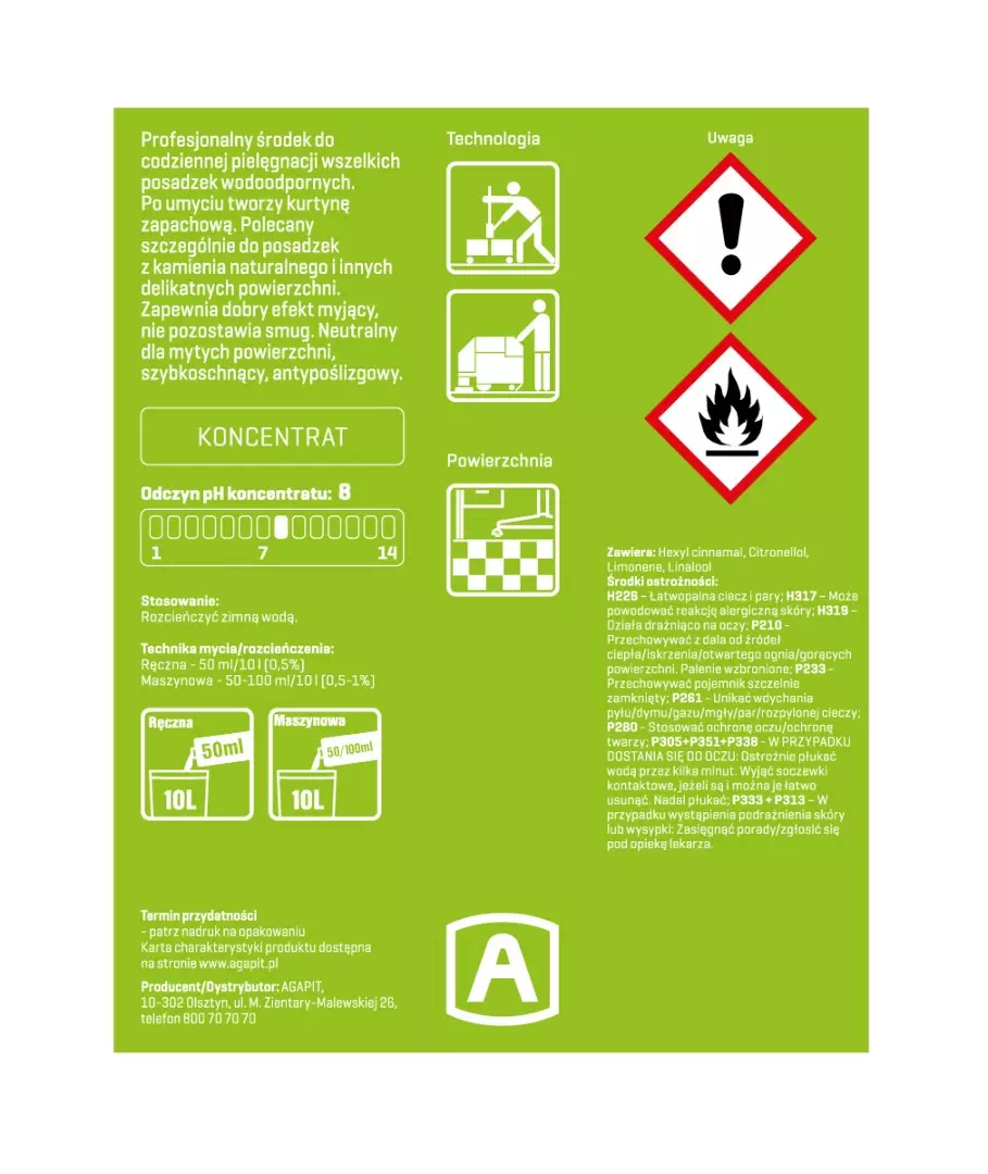Technika mycia/rozcieńczenia:- Ręczna: 0,5% (50 ml/10 l wody)