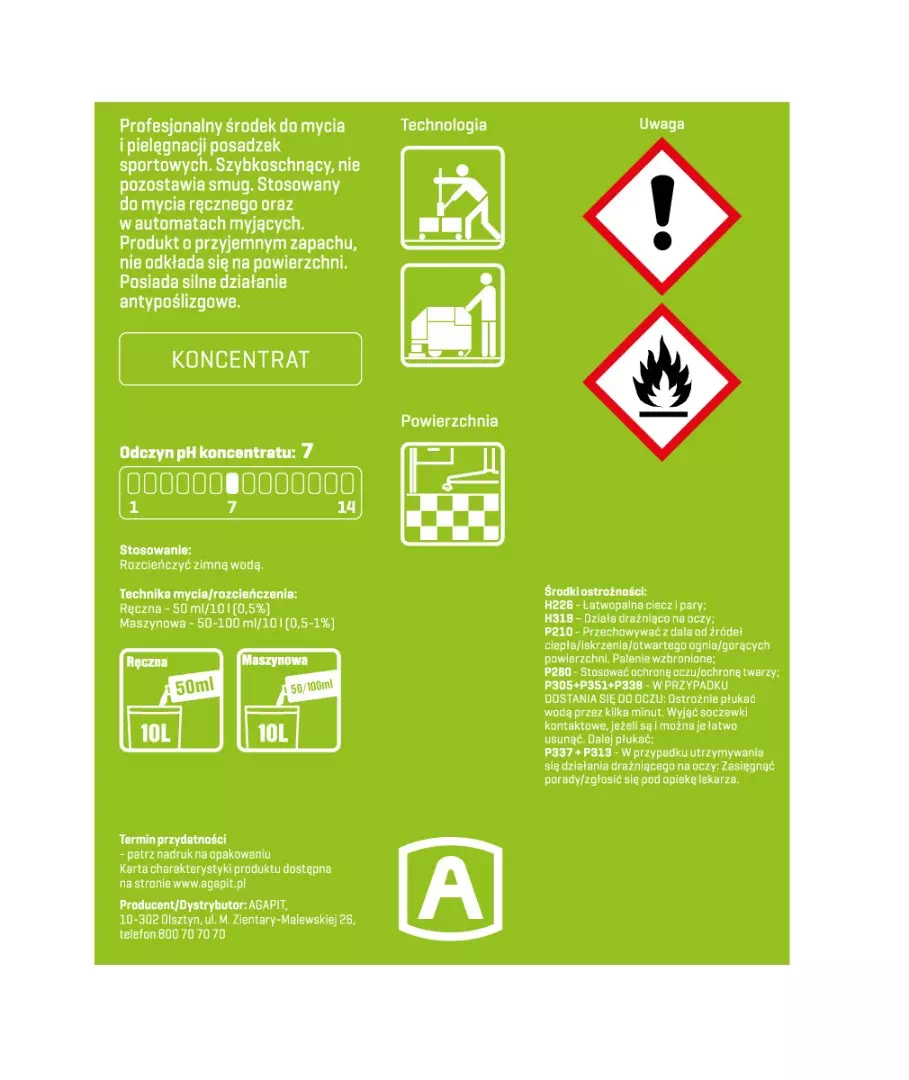 Technika mycia/rozcieńczenia:- Ręczna: 0,5% (50 ml/10 l wody)