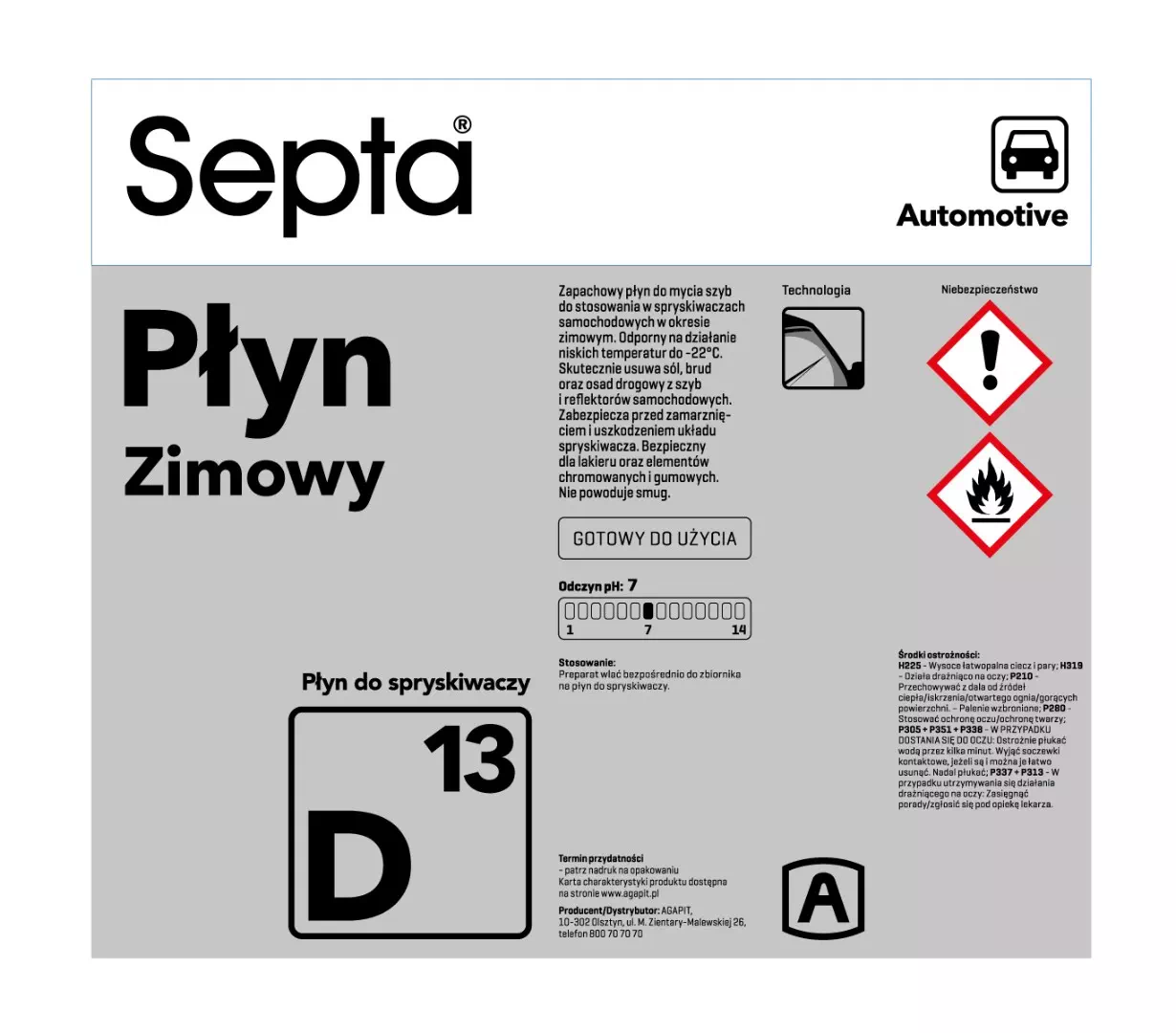 Zapachowy płyn do mycia szyb do stosowania w spryskiwaczach samochodowych w okresie zimowym. Odporny na działanie niskich temperatur do -22°C. Skutecznie usuwa lód, sól, brud oraz osad drogowy z szyb i reflektorów samochodowych. Zabezpiecza przed zamarznięciem i uszkodzeniem układu spryskiwacza. Bezpieczny dla lakieru oraz elementów chromowanych i gumowych. Nie zostawia smug.