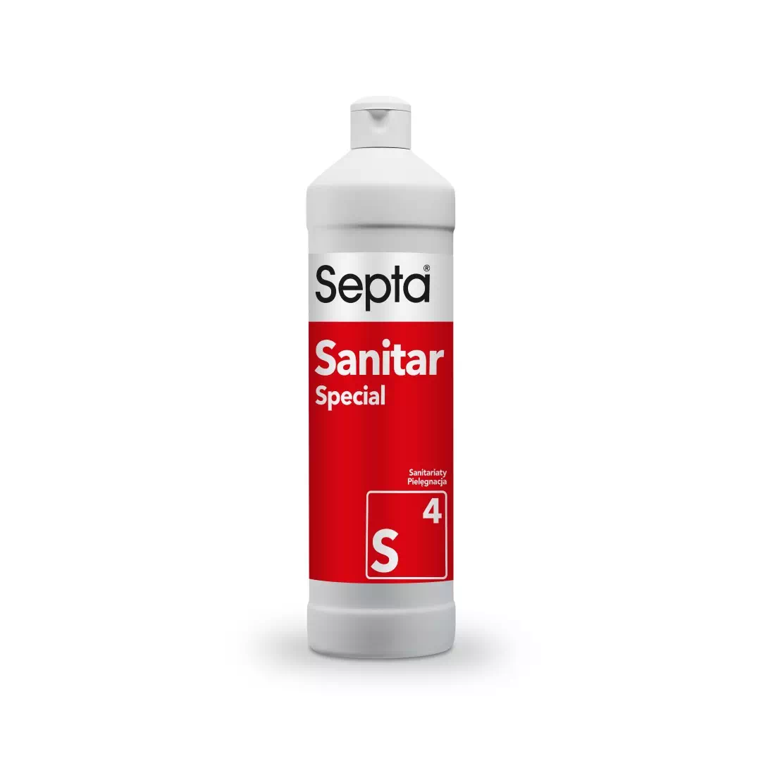 Septa Sanitar Special S4 to profesjonalny środek czystości do pielęgnacji powierzchni i urządzeń sanitarnych. Szybko rozpuszcza i usuwa osady z kamienia wodnego, resztki mydła, tłusty brud oraz rdzawe nacieki. Produkt bardzo skuteczny i bezpieczny dla mytych powierzchni.