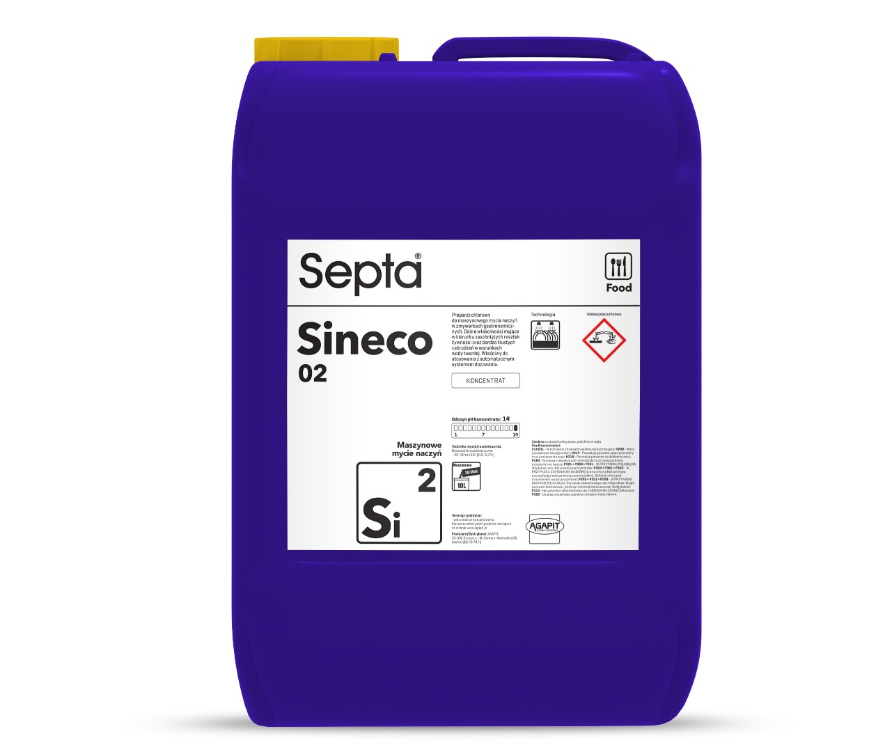 Septa Sineco 02 SI2 to preparat do maszynowego mycia naczyń w zmywarkach gastronomicznych. Dobre właściwości myjące w kierunku zaschniętych resztek żywności oraz bardzo tłustych zabrudzeń w warunkach wody twardej. Właściwy do stosowania z automatycznym systemem dozowania.