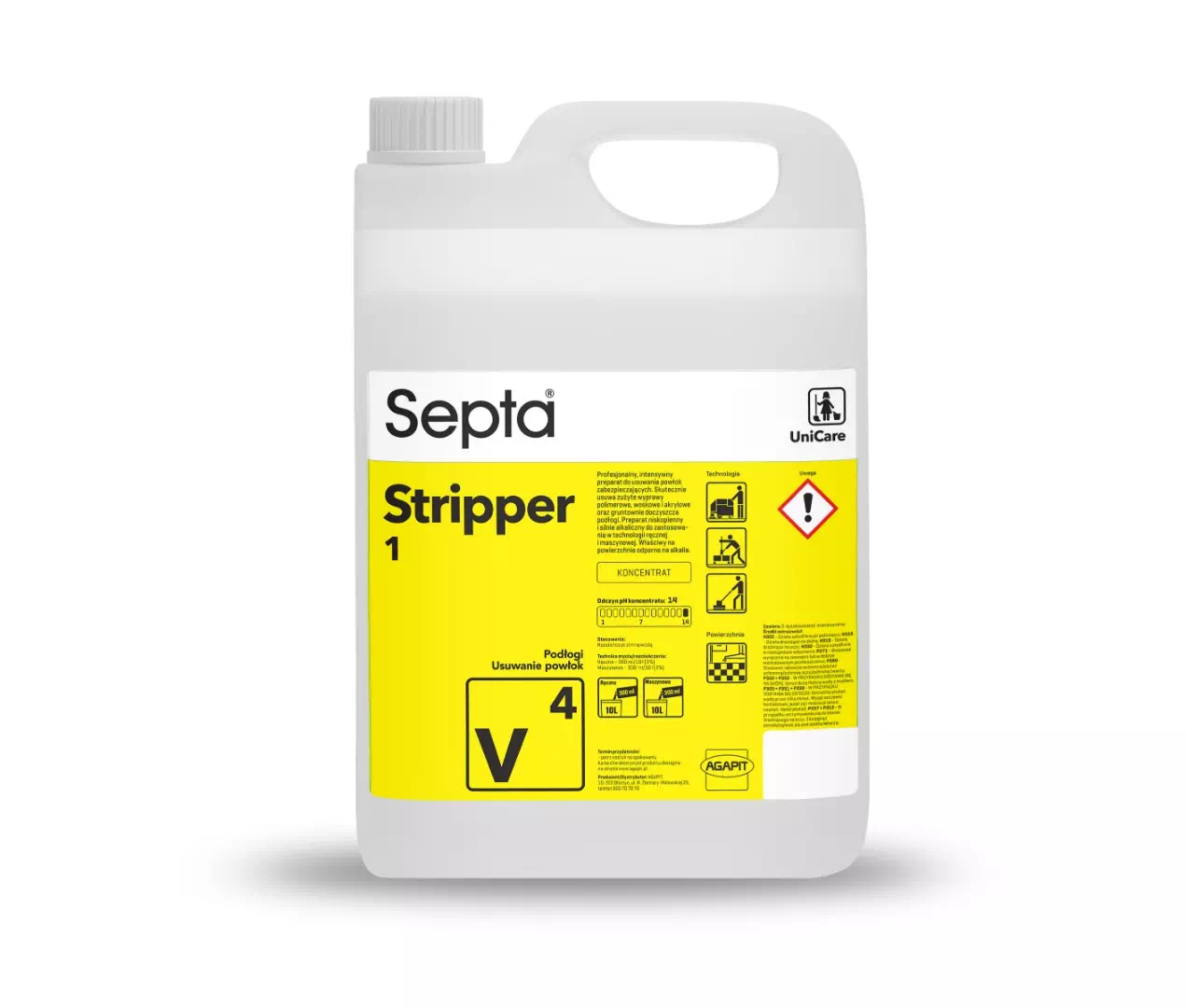 Septa Stripper 1 V4 to profesjonalny intensywny preparat do usuwania powłok zabezpieczających. Skutecznie usuwa zużyte wyprawy polimerowe, woskowe i akrylowe oraz gruntownie doczyszcza podłogi. Preparat niskopienny i silnie alkaliczny do zastosowania w technologii ręcznej i maszynowej. Właściwy na powierzchnie odporne na alkalia.
