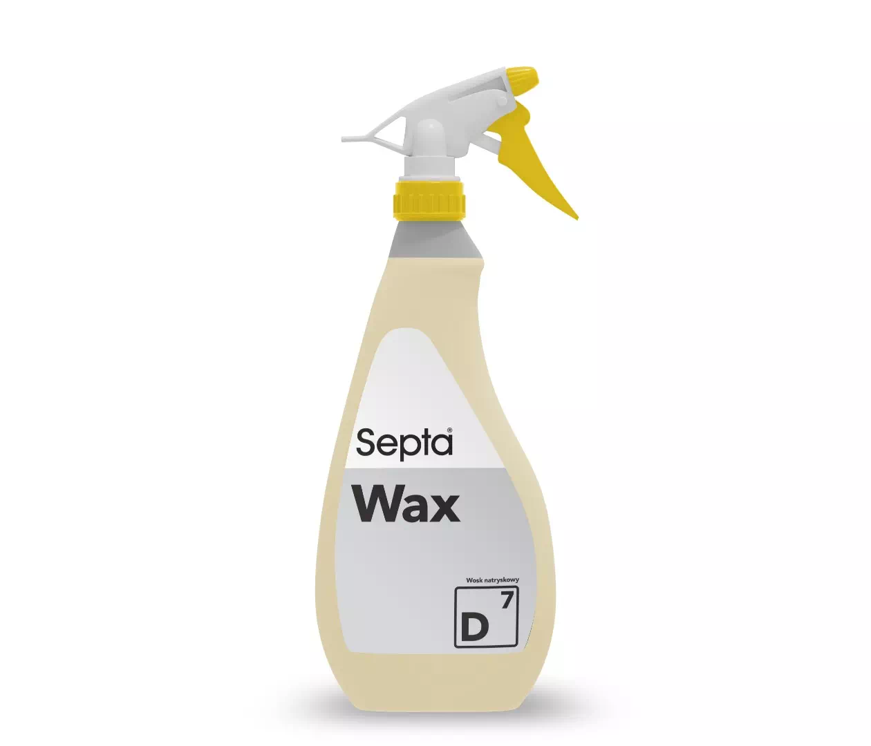 Septa Wax D7 to profesjonalna chemia samochodowa. Nabłyszczający preparat na bazie wosków syntetycznych. Nadaje połysk i chroni lakier przed działaniem czynników atmosferycznych. Przyspiesza proces suszenia. Produkt gotowy do użycia.