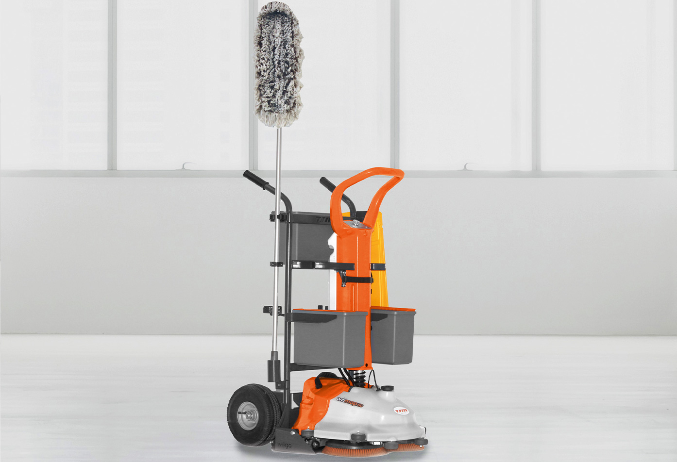 WILLGO 50 to Wózek serwisowy dedykowany do transportu pionowych szorowarek Willmop i narzędzi czyszczących: