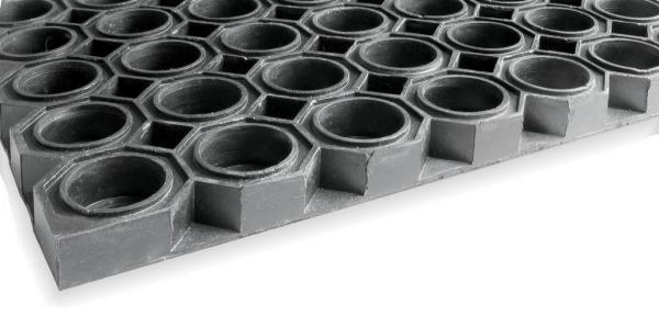 Wycieraczka gumowa charakteryzuje się wyjątkową trwałością i dużą odpornością na ścieranie oraz zmiany temperatury. Dobrze czyści obuwie. Wykonana jest z naturalnej gumy bez dodatku wypełniaczy. Specjalnie uformowany spód daje naturalny drenaż.
