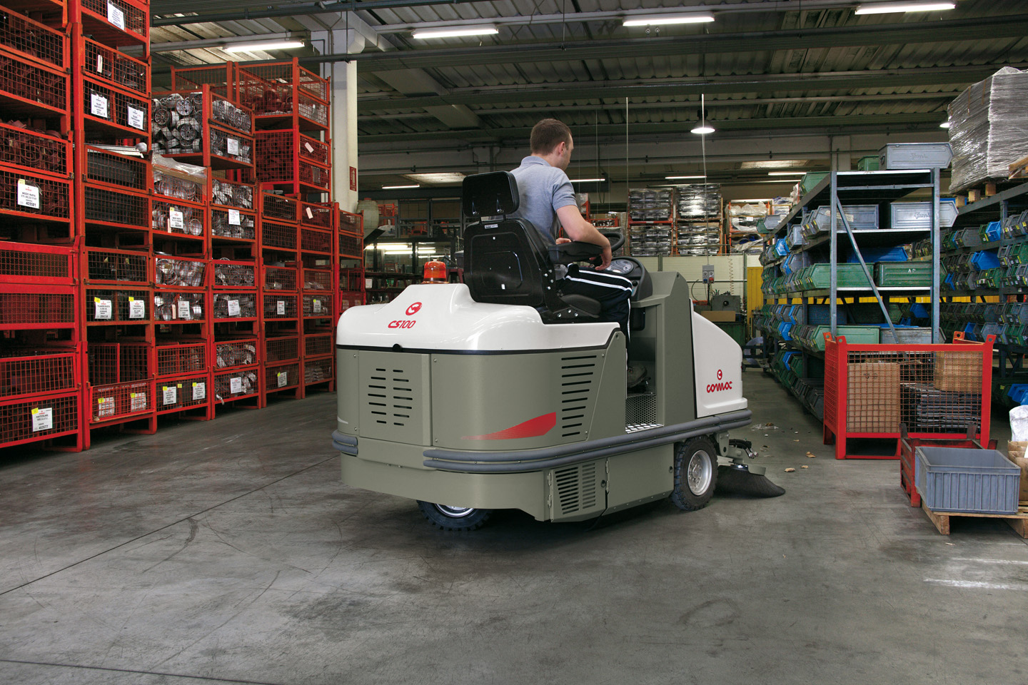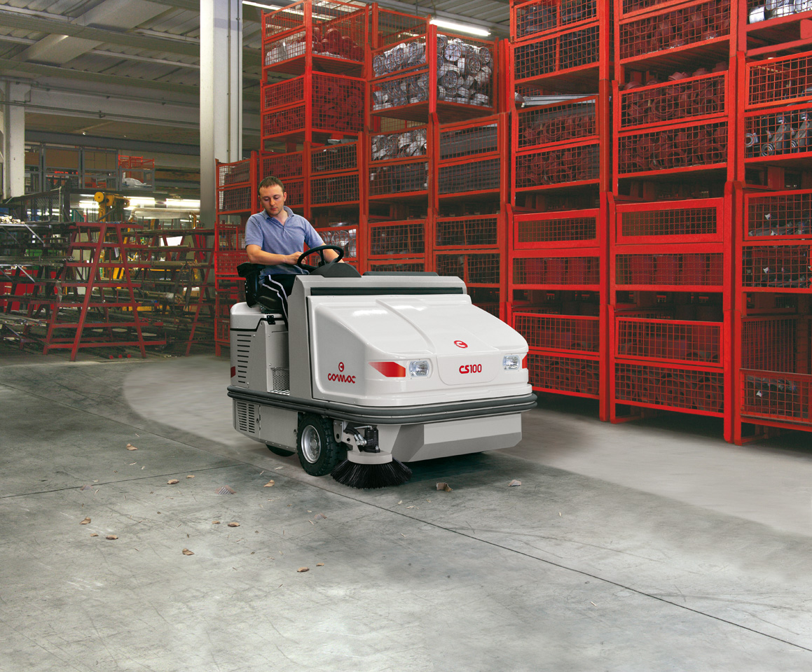 Zamiatarki przemysłowe CS 100 firmy Comac są odpowiednie do sprzątania najbardziej uporczywych zanieczyszczeń zarówno w pomieszczeniach, jak i na zewnątrz. Doskonale sprawdzają się w miejscach takich jak centra handlowe czy parkingi o powierzchni do 10000 m². Zamiatarki CS 100 zostały zaprojektowane tak, aby z łatwością zbierać śmieci oraz drobny pył. Dostępne w trzech wersjach: bateryjnej, spalinowej (diesel) lub spalinowej (LPG) z szerokością czyszczenia 135 cm (CS 100) lub 150 cm (CS 120) oraz 1 szczotką boczną. Istnieje również wersja dopuszczona do użytku ulicznego znajdująca zastosowanie przy sprzątaniu przestrzeni publicznych.