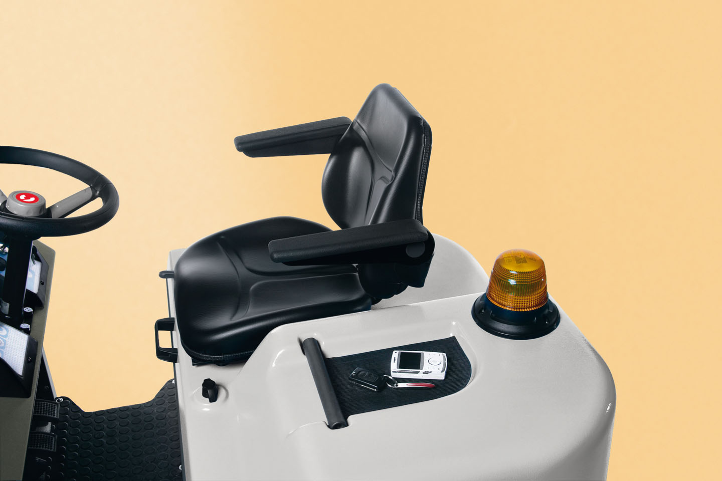 Zamiatarka CS 110 wyposażona jest w innowacyjny panel sterowania, zbliżony do samochodowej deski rozdzielczej, z natychmiastowym dostępem do wszystkich funkcji. Nowatorski projekt kierownicy zapewnia maksymalny komfort prowadzenia zamiatarki.