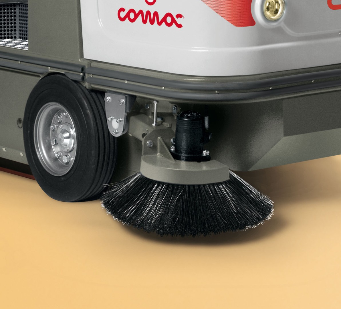Zamiatarka samojezdna CS 110 firmy Comac jest odpowiednia do sprzątania najbardziej uporczywych zabrudzeń zarówno w pomieszczeniach, jak i na zewnątrz. Doskonale sprawdza się w centrach handlowych, na skwerach oraz parkingach o powierzchni do 10000 m². Dostępne modele zasilane bateryjnie lub silnikiem diesla z szerokością czyszczenia 142 cm z 1 szczotką boczną.