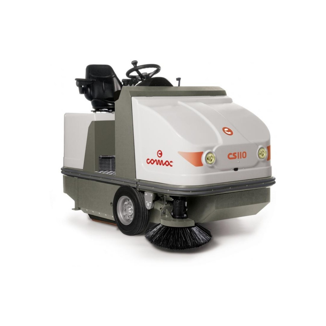 Zamiatarki przemysłowe CS 110 firmy Comac są odpowiednie do sprzątania najbardziej uporczywych zabrudzeń zarówno w pomieszczeniach, jak i na zewnątrz. Doskonale sprawdzają się w centrach handlowych, na skwerach oraz parkingach o powierzchni do 10000 m². Dostępne modele zasilane bateryjnie lub silnikiem diesla z szerokością czyszczenia 142 cm z 1 szczotką boczną.