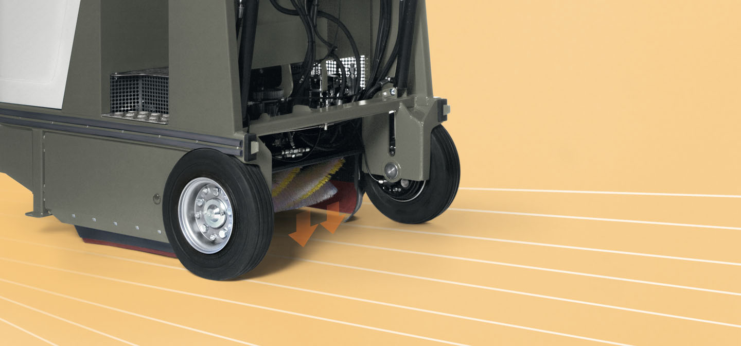 Samopoziomująca się szczotka centralna zapewnia ciągły kontakt z podłożem.