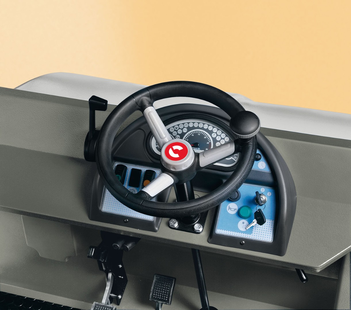 Zamiatarki CS 110 wyposażone są w innowacyjny panel sterowania, zbliżony do samochodowej deski rozdzielczej, z natychmiastowym dostępem do wszystkich funkcji. Nowatorski projekt kierownicy zapewnia maksymalny komfort prowadzenia zamiatarki.