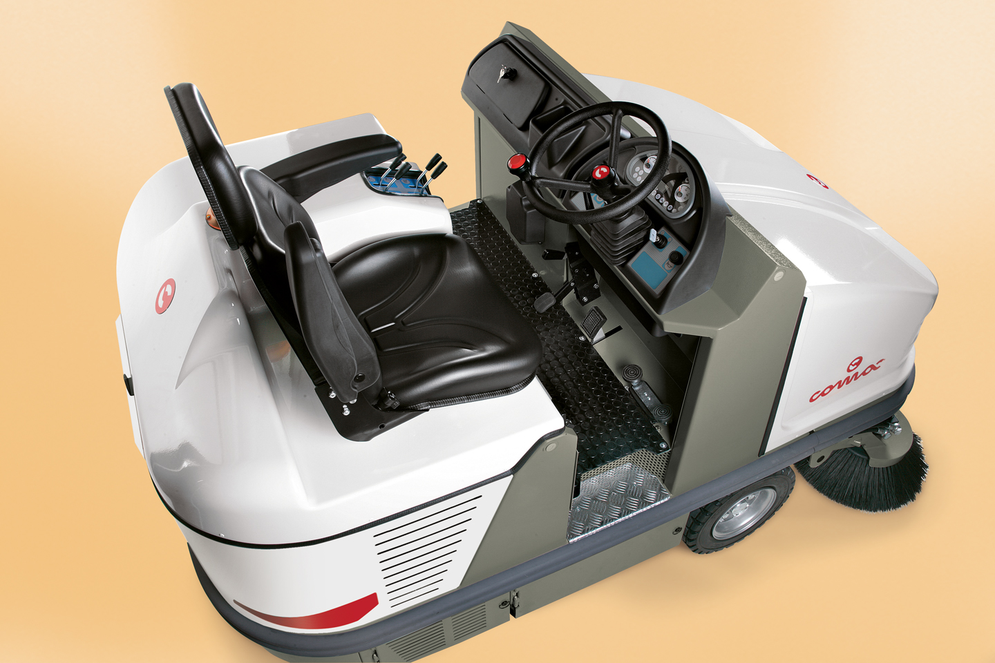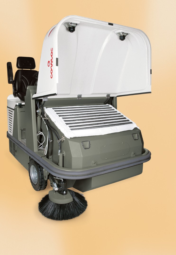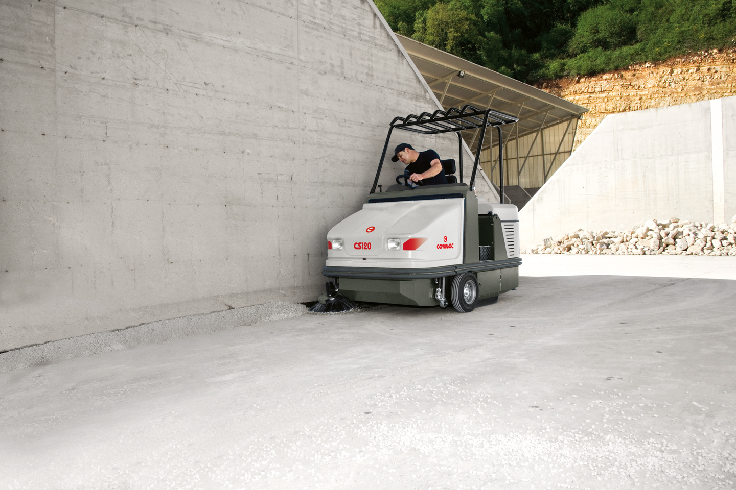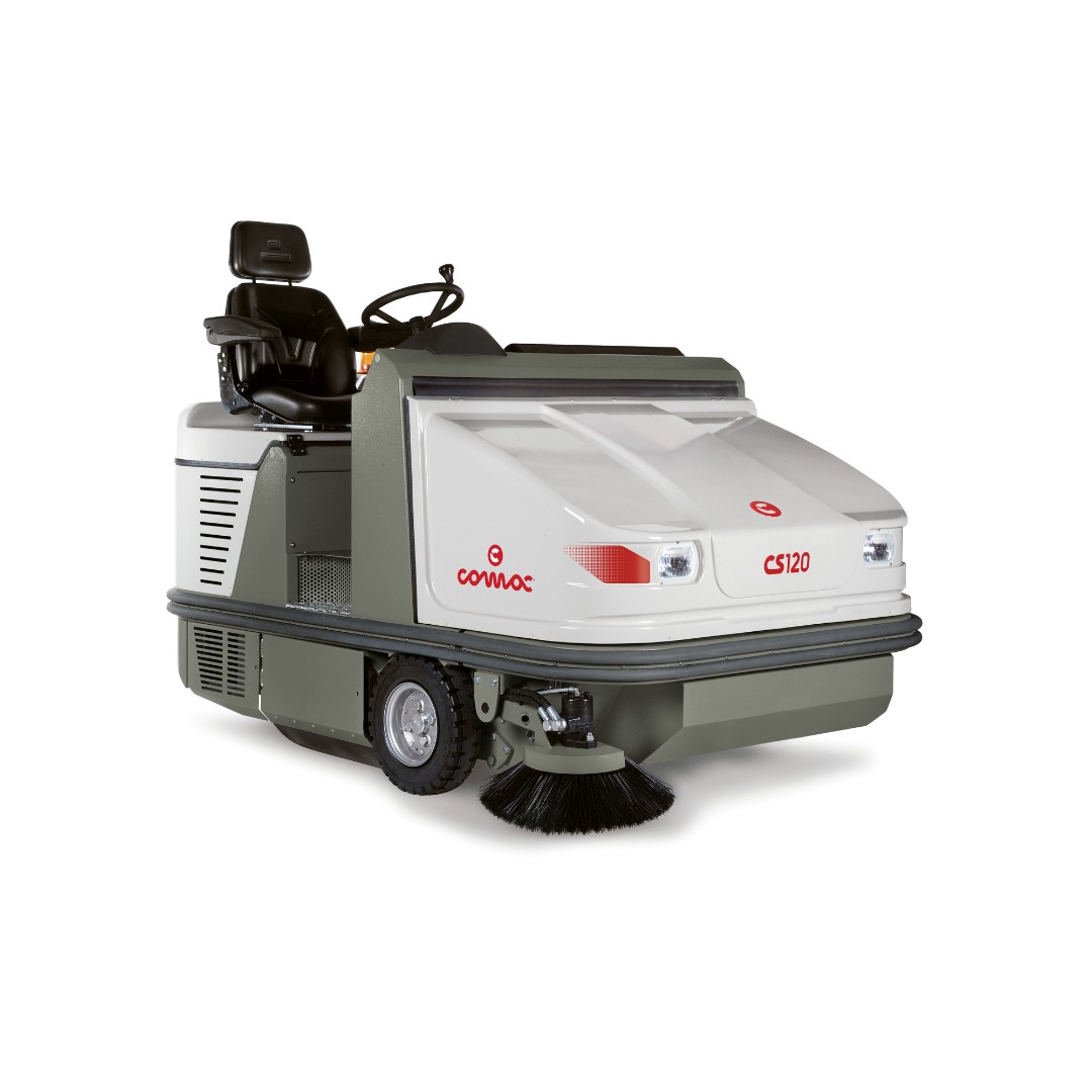 Zamiatarki przemysłowe CS 120 firmy Comac są odpowiednie do sprzątania najbardziej uporczywych zanieczyszczeń zarówno w pomieszczeniach, jak i na zewnątrz. Doskonale sprawdzają się w miejscach takich jak centra handlowe czy parkingi o powierzchni do 10000 m^(2). Zamiatarki dostępne są w wersjach: bateryjnej, spalinowej (diesel) lub spalinowej (LPG) z szerokością czyszczenia 135 cm (CS100) lub 150 cm (CS120) oraz 1 szczotką boczną. Istnieje również wersja dopuszczona do użytku ulicznego znajdująca zastosowanie przy sprzątaniu przestrzeni publicznych.
