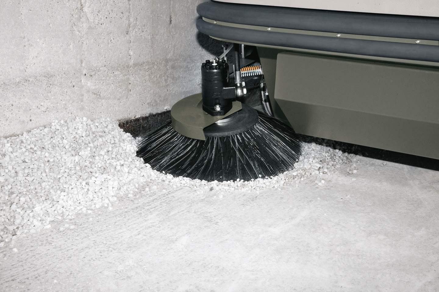Szczotka boczna cofa się w przypadku zderzenia, zapobiegając w ten sposób ewentualnym uszkodzeniom.