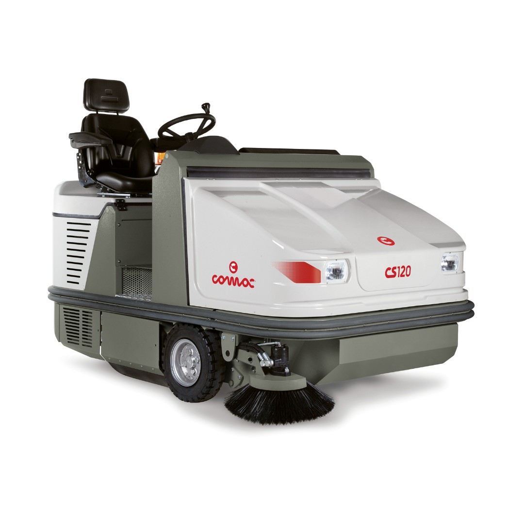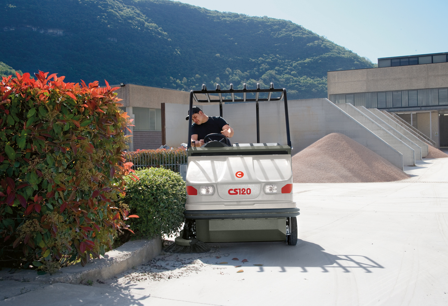 CS 120 to zamiatarki przemysłowe będące w czołówce pod względem mocy, wydajności, wytrzymałości oraz zdolności do wykonywania ciężkich zadań. Charakteryzują się elektrycznym otrząsaczem filtra utrzymującym filtr kieszeniowy w czystości i kontrolowanym bezpośrednio przy użyciu umieszczonego na panelu sterowania przycisku. System hydrauliczny jest wyjątkowo prosty i niezawodny, a funkcje kontrolne - bardzo praktyczne w użyciu. Wszystkie modele zamiatarek wyposażone są w chłodnicę oleju z niezależnym termostatem i zaworem elektromagnetycznym w celu utrzymania temperatury oleju na optymalnym poziomie oraz zapewnienia najwyższej wydajności. W ten sposób następuje zmniejszenie zużycia oraz przedłużenie żywotności części, przy czasie pracy wersji zasilanych bateryjnie do 5 godzin.