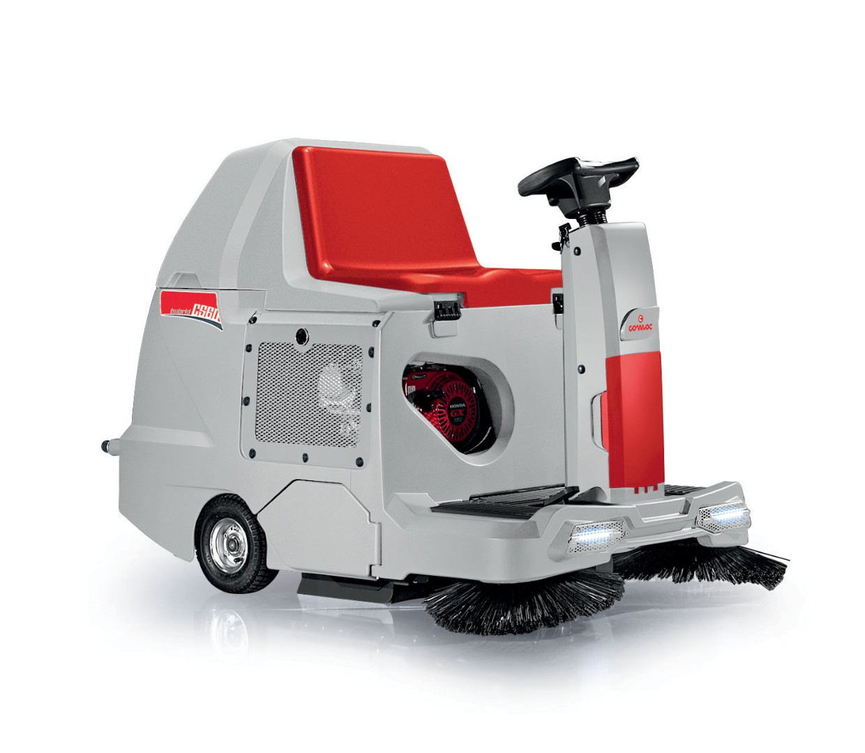 Dostępne w wersji zasilanej akumulatorami (zamiatarka akumulatorowa - wersja B) lub z zasilaniem hybrydowym (zamiatarka hybrydowa - wersja Hybrid), łączącym akumulatory z silnikiem benzynowym. Nowy design zwiększa wygodę i zwrotność oraz umożliwia bezproblemową pracę w miejscach o przeciętnych gabarytach, jak również tam, gdzie trudno się poruszać. Podczas pracy operator sprawuje nad zamiatarką całkowitą kontrolę dzięki pełnej widoczności całego obszaru roboczego. Pomaga mu w tym również nowa kierownica z wbudowanymi przyciskami sterowniczymi, dzięki której korzystanie z funkcji jest szybsze, bardziej intuicyjne i nie grozi rozproszeniem uwagi. Dostępne z filtrem panelowym do zadań standardowych lub z filtrem materiałowym, zapewniającym optymalne rezultaty filtrowania również w pomieszczeniach o bardzo wysokim stopniu zapylenia.