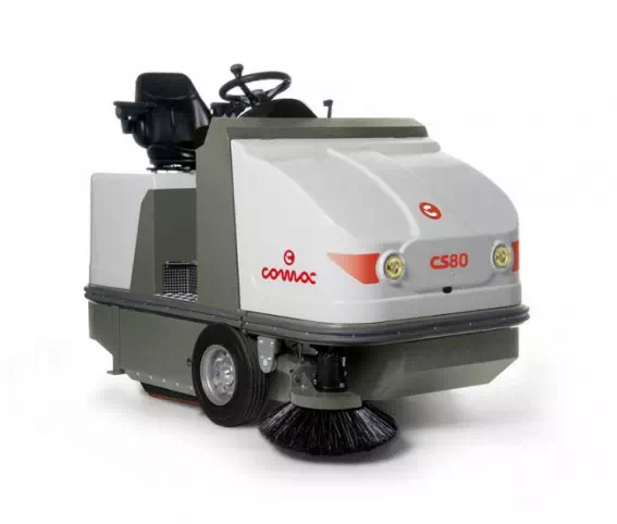 Zamiatarki samojezdne CS 80 firmy Comac są odpowiednie do sprzątania najbardziej uporczywych zabrudzeń zarówno w pomieszczeniach, jak i na zewnątrz. Doskonale sprawdzają się w centrach handlowych, na skwerach oraz parkingach o powierzchni do 10000 m². Dostępne modele zasilane bateryjnie (zamiatarka akumulatorowa) lub silnikiem diesla (zamiatarka spalinowa) z szerokością czyszczenia 112 cm z 1 szczotką boczną.