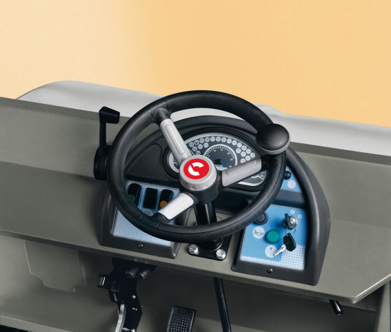 Zamiatarki CS 80 wyposażone są w innowacyjny panel sterowania, zbliżony do samochodowej deski rozdzielczej, z natychmiastowym dostępem do wszystkich funkcji. Nowatorski projekt kierownicy zapewnia maksymalny komfort prowadzenia zamiatarki.