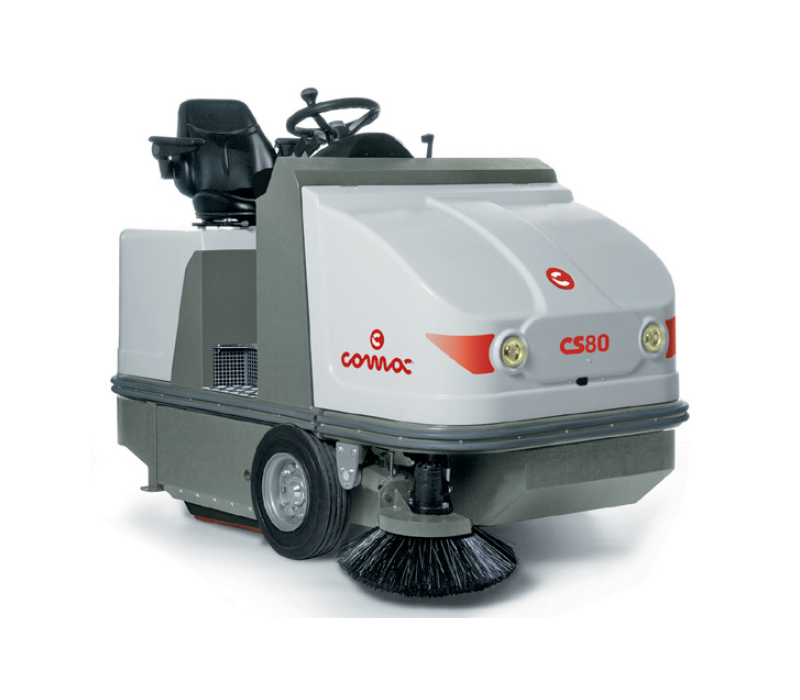 Zamiatarki samojezdne CS 80 firmy Comac są odpowiednie do sprzątania najbardziej uporczywych zabrudzeń zarówno w pomieszczeniach, jak i na zewnątrz. Doskonale sprawdzają się w centrach handlowych, na skwerach oraz parkingach o powierzchni do 10000 m². Dostępne modele zasilane bateryjnie (zamiatarka akumulatorowa) lub silnikiem diesla (zamiatarka spalinowa) z szerokością czyszczenia 112 cm z 1 szczotką boczną.