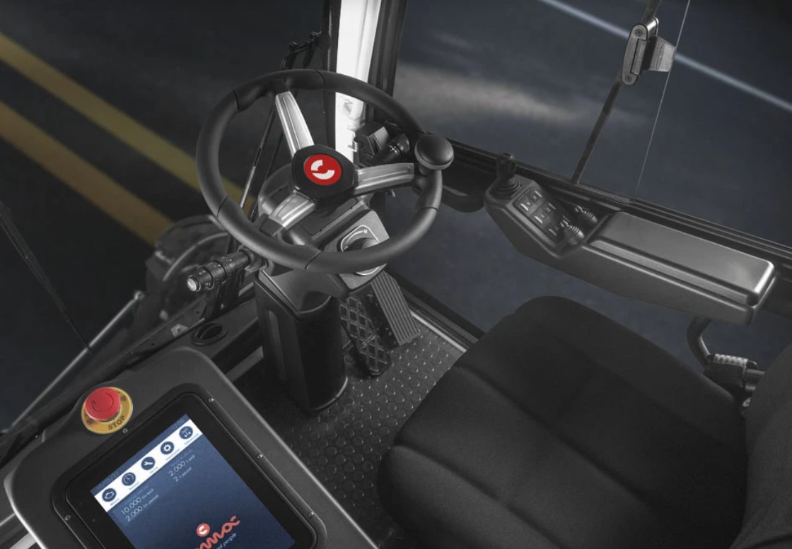 - Maksymalny komfort operatora dzięki wygodnemu pneumatycznemu fotelowi kierowcy, który jest izolowany za pomocą tłumiących drgania poduszek, co zapewnia komfortową i płynną jazdę nawet po wielu godzinach pracy
